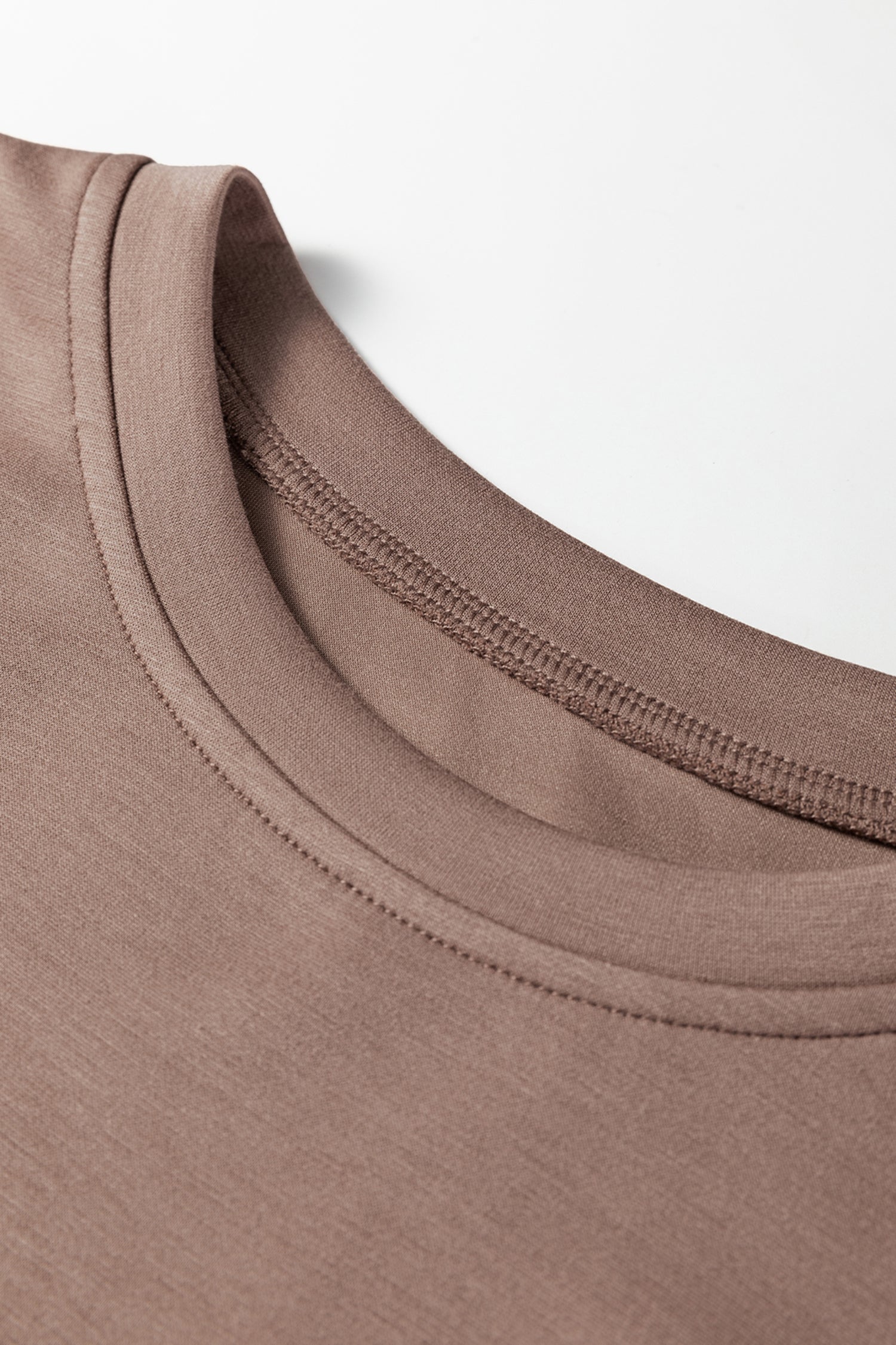 Coffee Solid Color Drop Shoulder Pullover Drawstring Mini Skirt 2pcs Outfit
