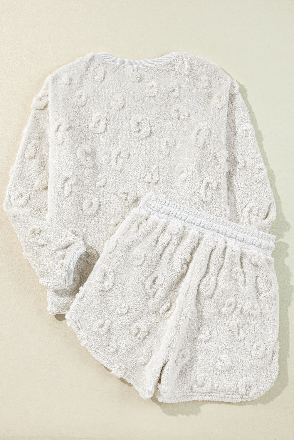 Light Grey Textured Leopard Fleece Loose Two Piece Lounge Set