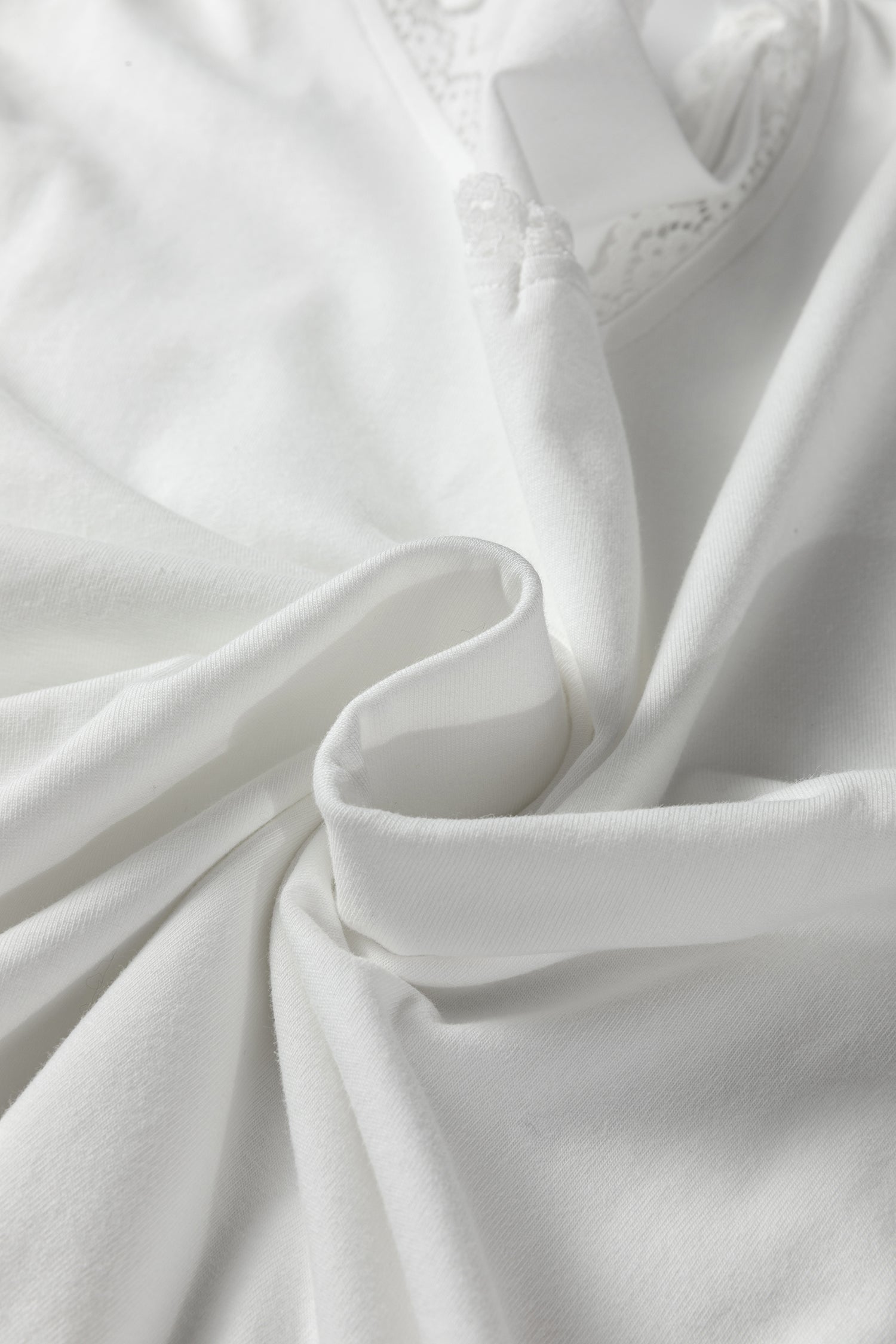- The lace trim patchwork adds feminine charm to this white loose tee.