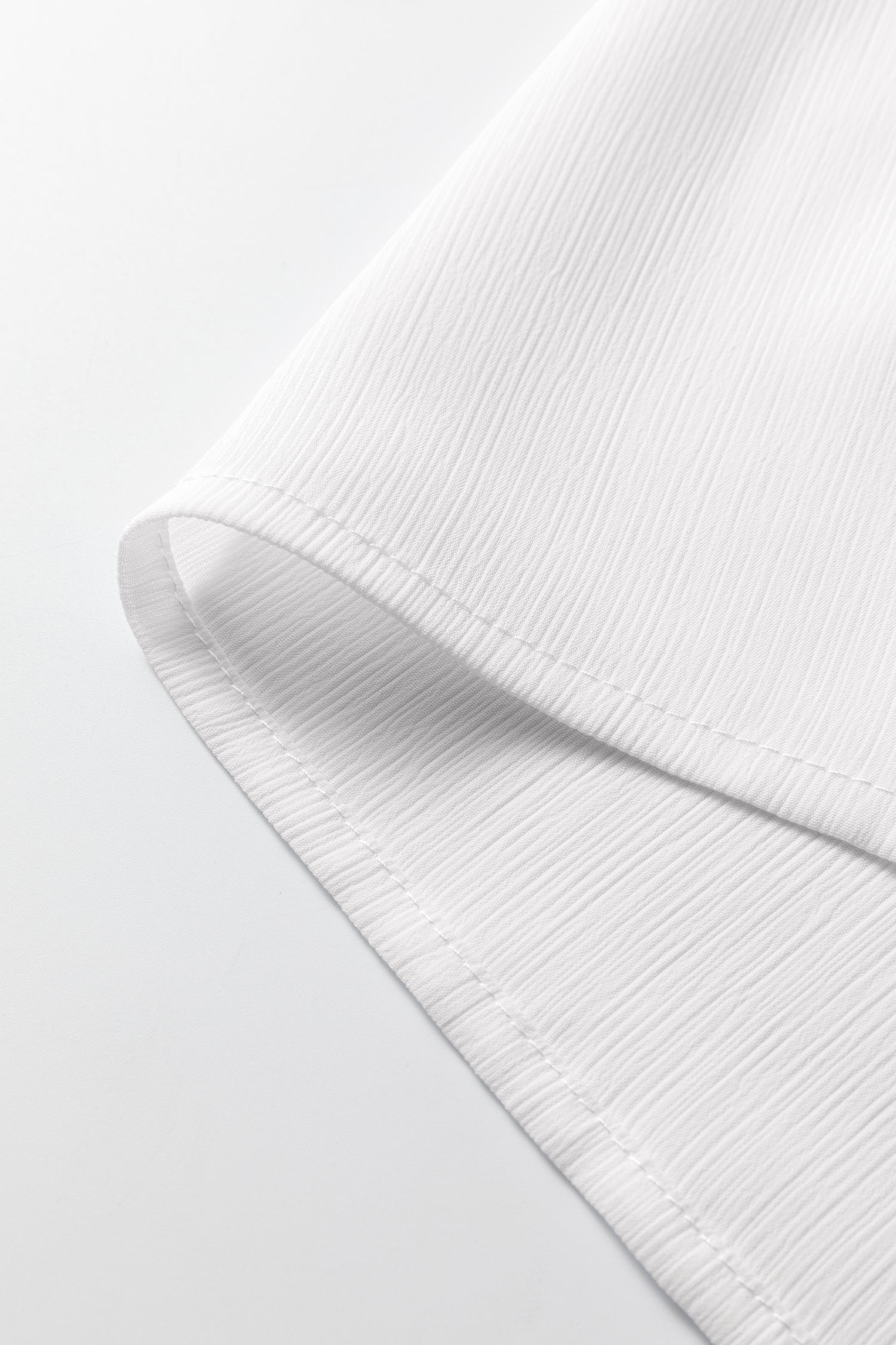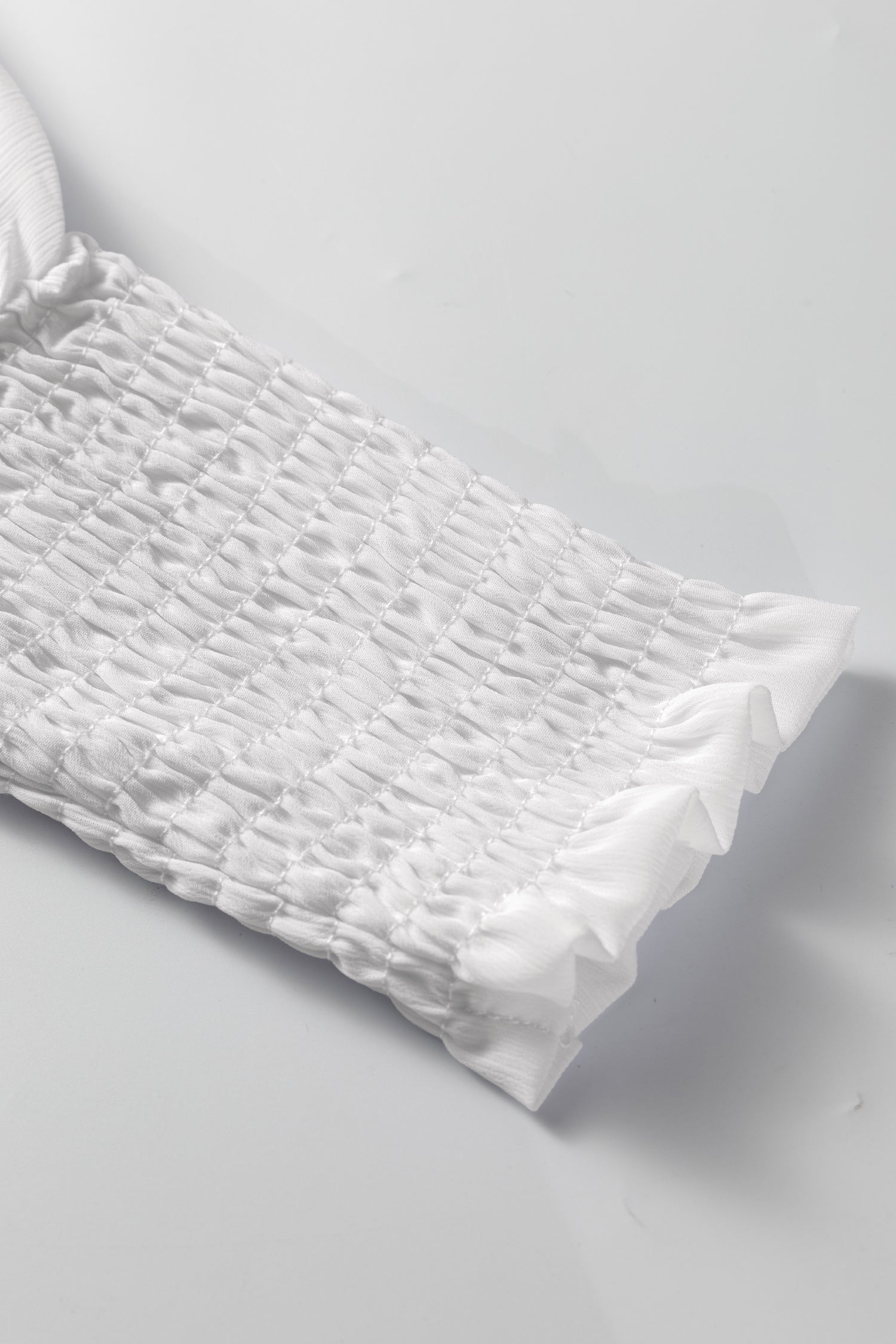 White Smocked Cuffs Semi Sheer Long Sleeve Dolman Blouse